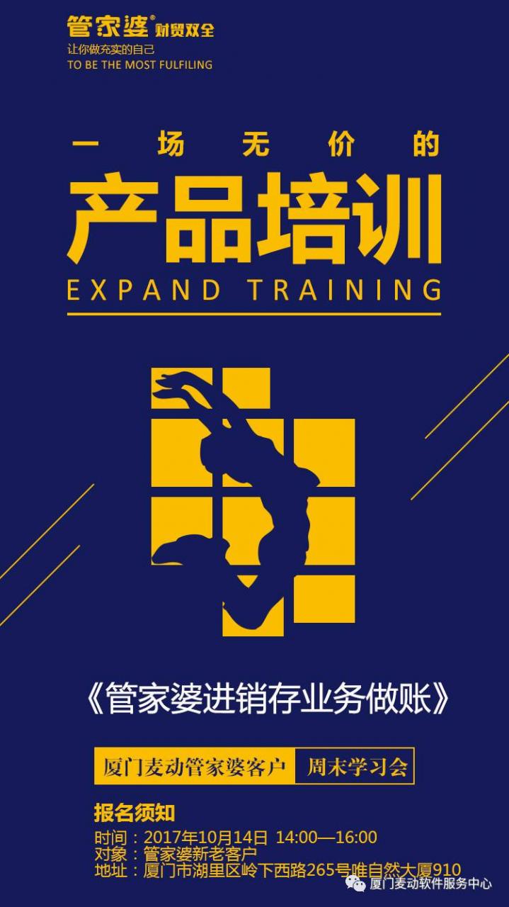 麥動科技第15期周末培訓開始報名啦 麥動科技第15期周末培訓開始報名啦 時間:2017年10月14日 14:00-16:00 對象:管家婆新老客戶 地址:廈門市湖里區(qū)嶺下西路265號唯自然大廈0910 報名電話:0592-5731396 ? ? ? ? ? http://www.dncmbs.cn ?0592-5731396 文章導航歷史的文章歷史的文章:廈門管家婆VIP福利——10月免費培訓課程安排!未來的文章未來的文章:麥動中秋線上博餅–今天你狀元了嗎相關(guān)文章管家婆軟件:無法保存打印機設(shè)置0x000006d9快速解決辦法12月 4, 2018Win10系統(tǒng)下,管家婆軟件如何添加啟動項12月 4, 2018管家婆ERP中關(guān)于憑證無法修改問題 -廈門管家婆8月 14, 2018【實施案例】分倉核算的好處-廈門管家婆軟件8月 8, 2018關(guān)于稅率的幾個簡單問答–廈門管家婆軟件8月 8, 2018管家婆里一般費用和現(xiàn)金費用的區(qū)別7月 25, 2018