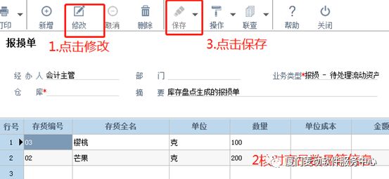 這時候系統會自動把我們帶到報損單/報溢單(這是草稿)