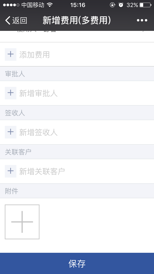 添加費用(費用項目可設置,如費用申請、費用報銷等)