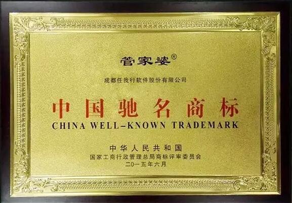 2016年4月,四川省工商局召開2015年度馳名商標、著名商標授牌大會,成都任我行軟件股份有限公司旗下的“管家婆”與“迪康制藥”、“蒲江雀舌”、“通江銀耳”等39家高知名度川企商標取得國家工商總局的馳名商標認定。