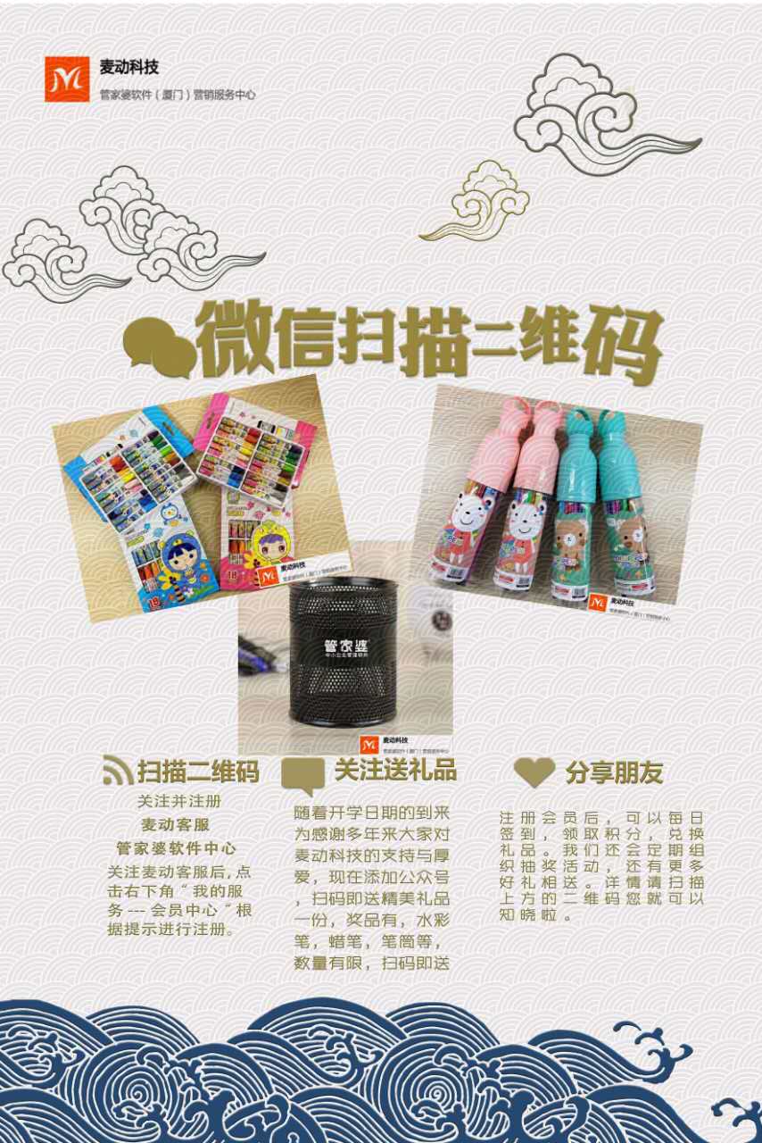 8月252017 廈門麥動助力開學季-掃碼送文具活動正在火熱進行 市場活動管家婆8月 25, 2017開學啦!管家婆和您陪伴孩子共成長?。?! 近期廈門麥動將在廈門各大專業市場進行老用戶拜訪活動,掃碼領取會員卡,即… 詳情